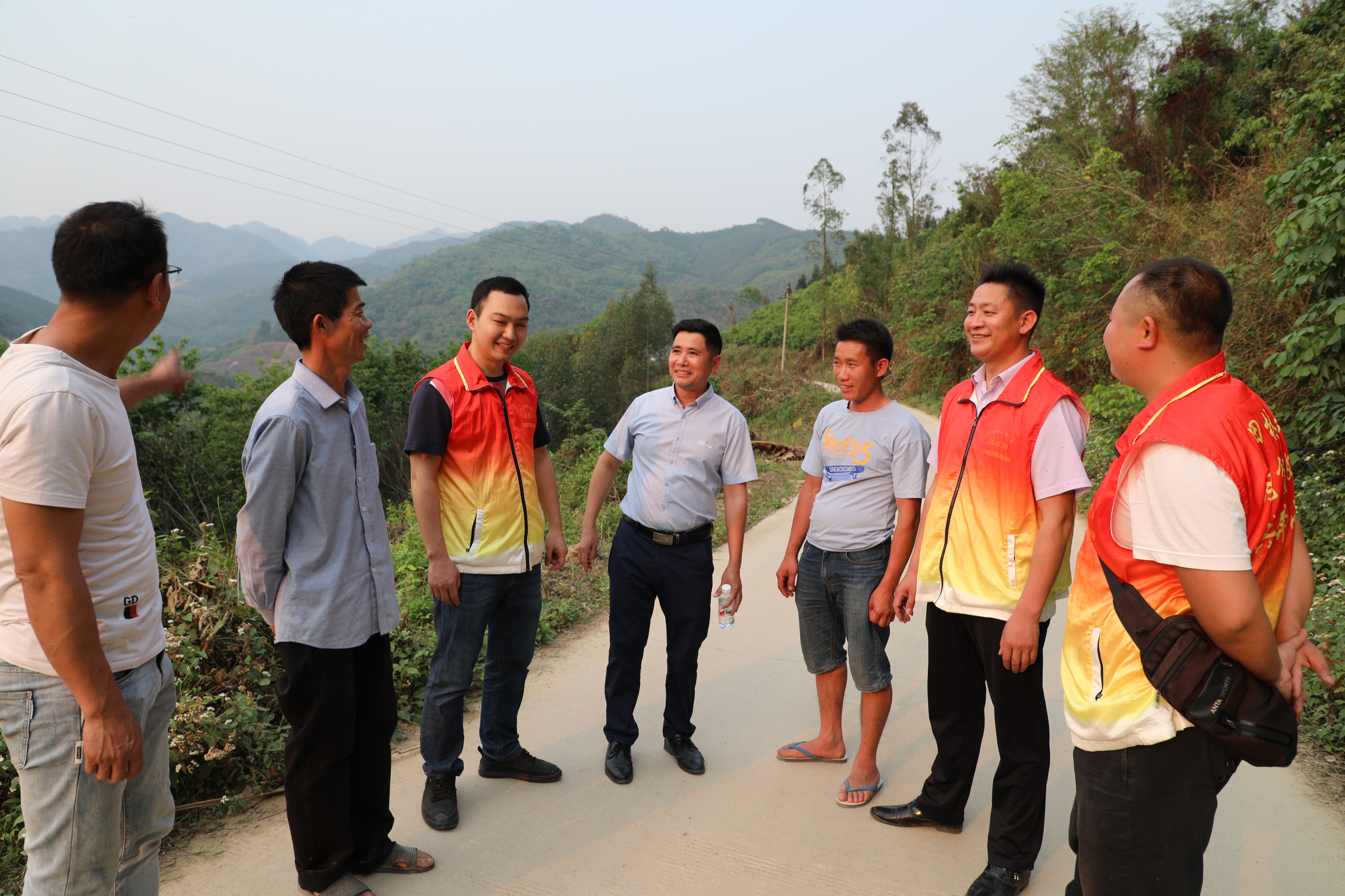 工作隊員和村委干部察看屯級道路情況