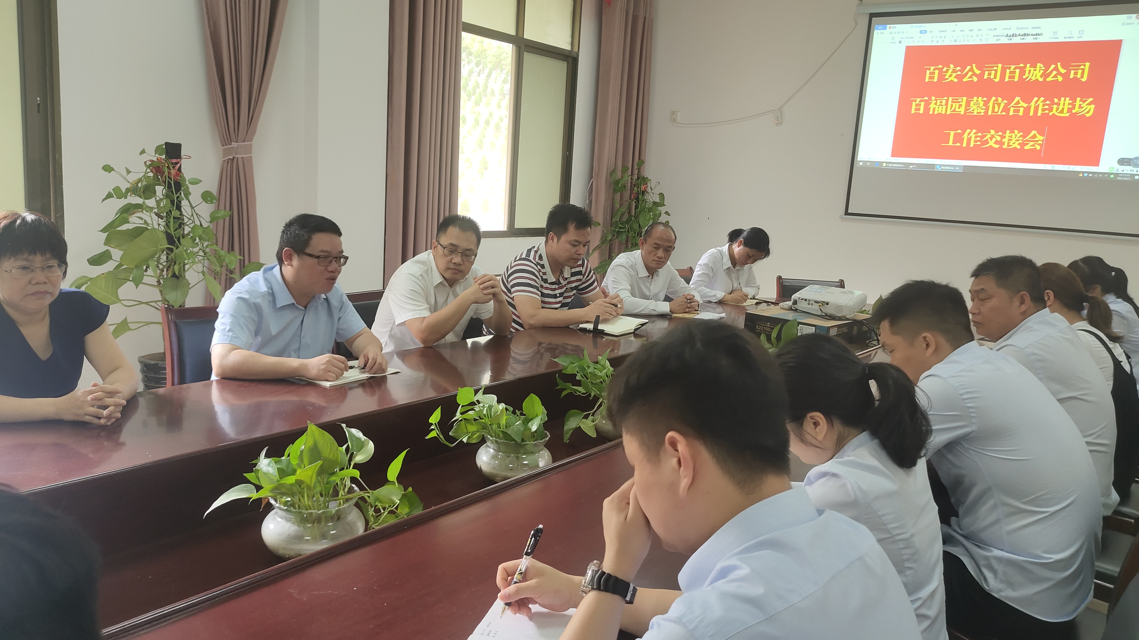 廣潤(rùn)公司領(lǐng)導(dǎo)班子與百安公司員工與第三方進(jìn)行工作交接會(huì)議現(xiàn)場(chǎng)