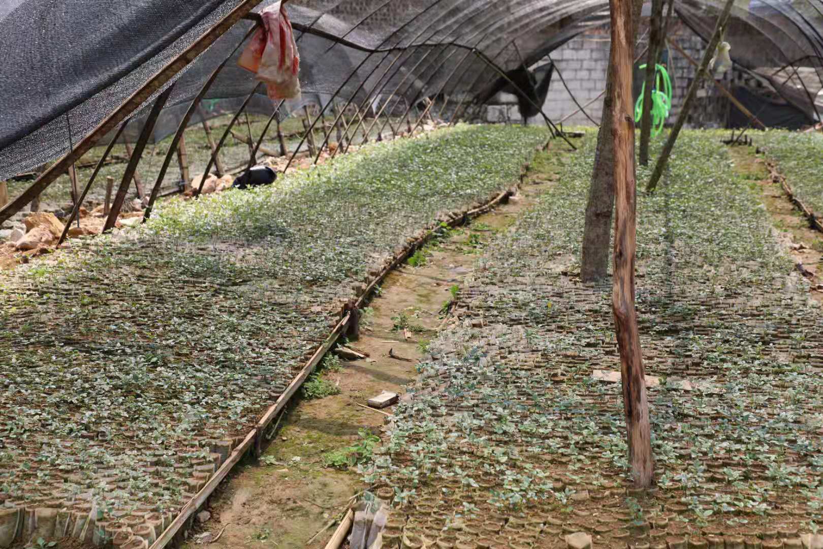 經(jīng)過走訪調(diào)研以及走出去參觀考察后,廖恒發(fā)現(xiàn)爛村村的土質(zhì)和氣候十分適合藥材山豆根生長。在他的牽引下,爛村村的村委會副主任楊秀朝外出考察調(diào)研山豆根種植,并大膽地到進種子種植。于是,他投入25萬元,在廖恒和工作隊員的幫助下,利用兩個月的時間流轉(zhuǎn)了60畝土地,然后,馬上進行育苗,今年年初開始移栽山豆根。目前可供200畝大田用苗的山豆根苗圃里的苗木茁壯成長,長勢喜人。