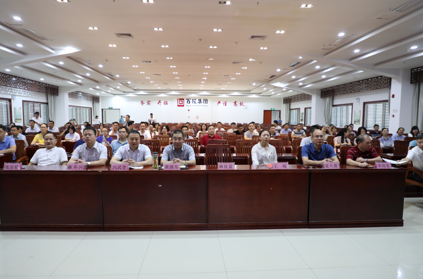 百投集團(tuán)組織黨員干部職工在六樓大會(huì)議室集中收聽收看直播盛況。